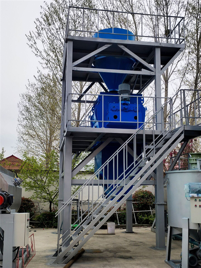 混合系統(tǒng):可配套雙軸無重力漿葉式混合機、犁刀混合機混合機,具有混合速度快、混合精度高等優(yōu)點,該機可攪拌1:10,00甚至更高的極限混合比。在攪拌漿葉合理的推動速度下,使聚苯顆粒、膠凝材料和化學添加劑等比重、粒度差異較大的物料,處于瞬間失重狀態(tài),在拌筒內形成全方位對流、擴散和相互剪切,快速溫和地達到混合均勻的效果,不會產生偏析和破壞物料的原始狀態(tài),確保了砂漿的保溫系數(shù)不會因保溫原料的形狀破壞而降低,確保了產品的保溫效果。